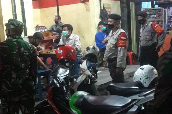 Saat itu didapati sebanyak 2 orang pengunjung Warkop yang tidak menggunakan masker. Mereka dijatuhi sanksi fisik berupa push up dan selanjutkan diberikan masker gratis sambil diingatkan agar selalu menggunakan masker saat berada di luar rumah.