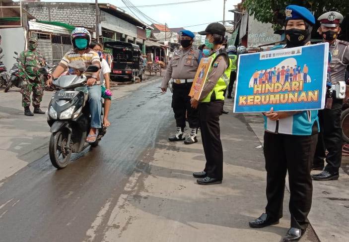 Seperti halnya yang dilakukan anggota Polsek Kenjeran bersama instansi samping di depan Puskesmas Sidotopo Wetan, Jalan Randu, Senin pagi, 26 Oktober 2020.