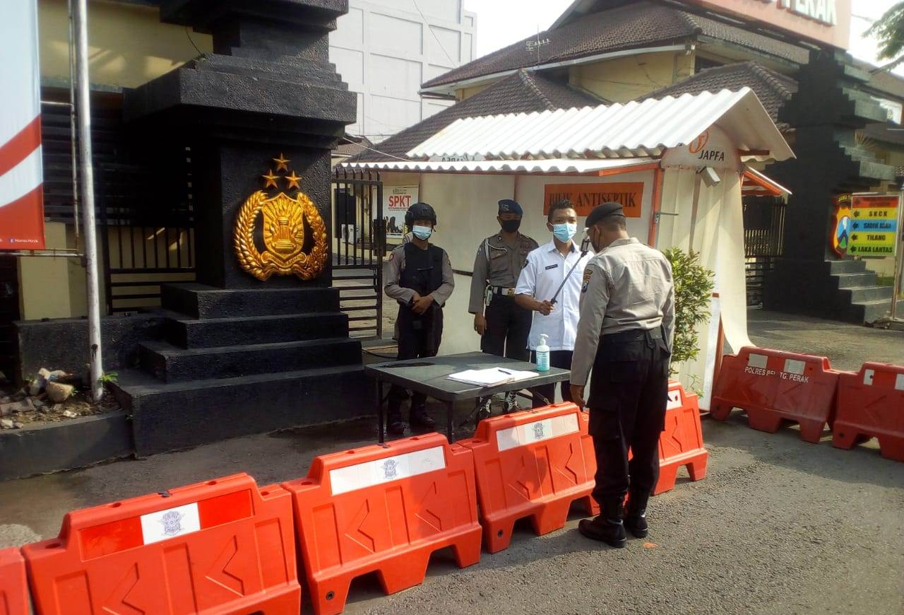 Pemeriksaan suhu badan dilakukan terhadap siapa saja yang hendak masuk ke lingkungan Mapolres. Baik personil Polri, ASN, PHL dan juga tamu.