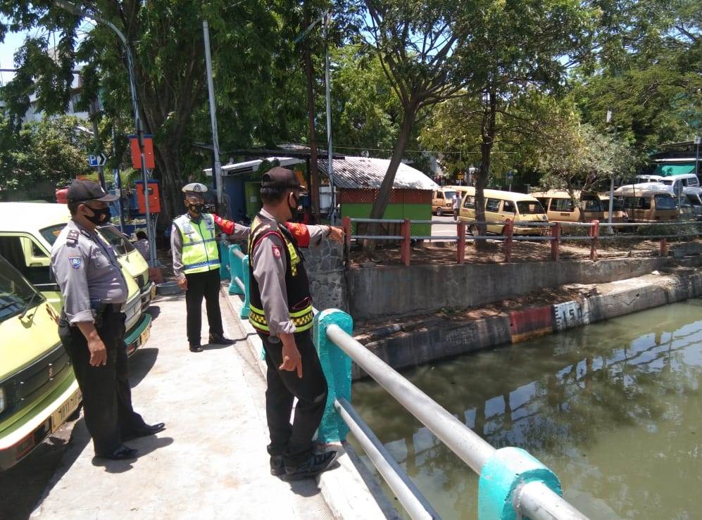 Seputarperak.com- Pemantauan debit air dilakukan personil Polsek Pabean Cantikan, Polres Pelabuhan Tanjung Perak di Sungai Kalimas, Rabu siang, 28 Oktober 2020.
