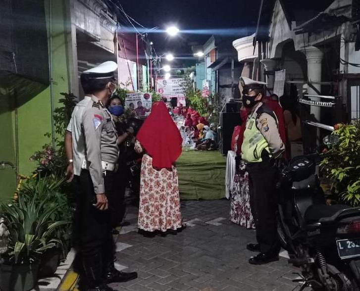 Seputarperak.com- Polsek Asemrowo, Polres Pelabuhan Tanjung Perak melakukan pengamanan kampanye dialogis untuk pemenangan Cawali dan Cawawali Surabaya nomor urut 1 di Jalan Tambak Mayor RT 03 RW 04, Kelurahan Asemrowo, Kamis malam, 29 Oktober 2020.