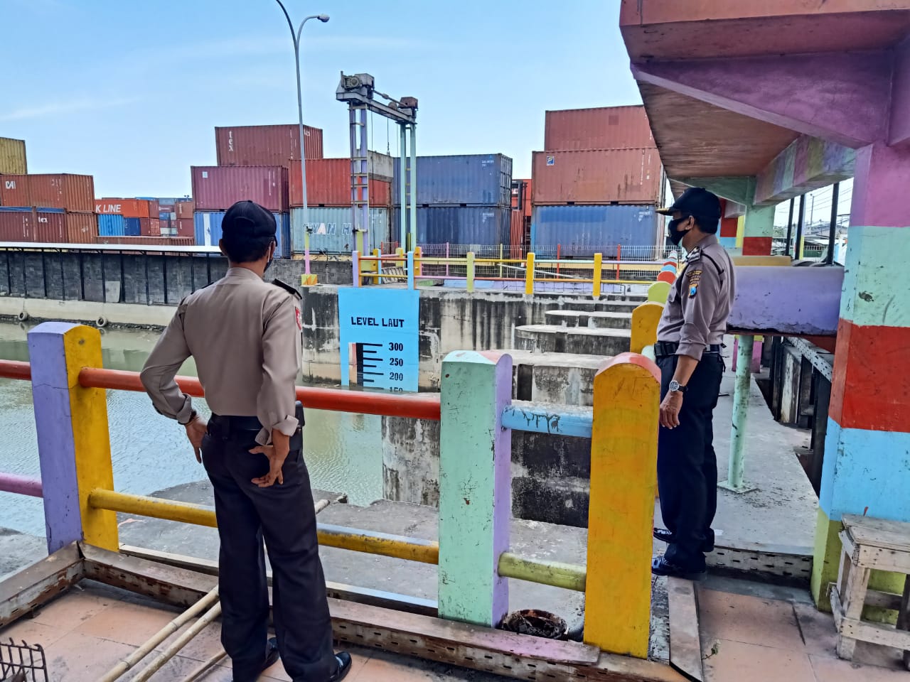 Seputarperak.com- Pemantauan debit air dilakukan personil Polsek Asemrowo, Polres Pelabuhan Tanjung Perak di Pintu Air Balong 2, Kelurahan Tambak Sarioso, Sabtu siang, 31 Oktober 2020.