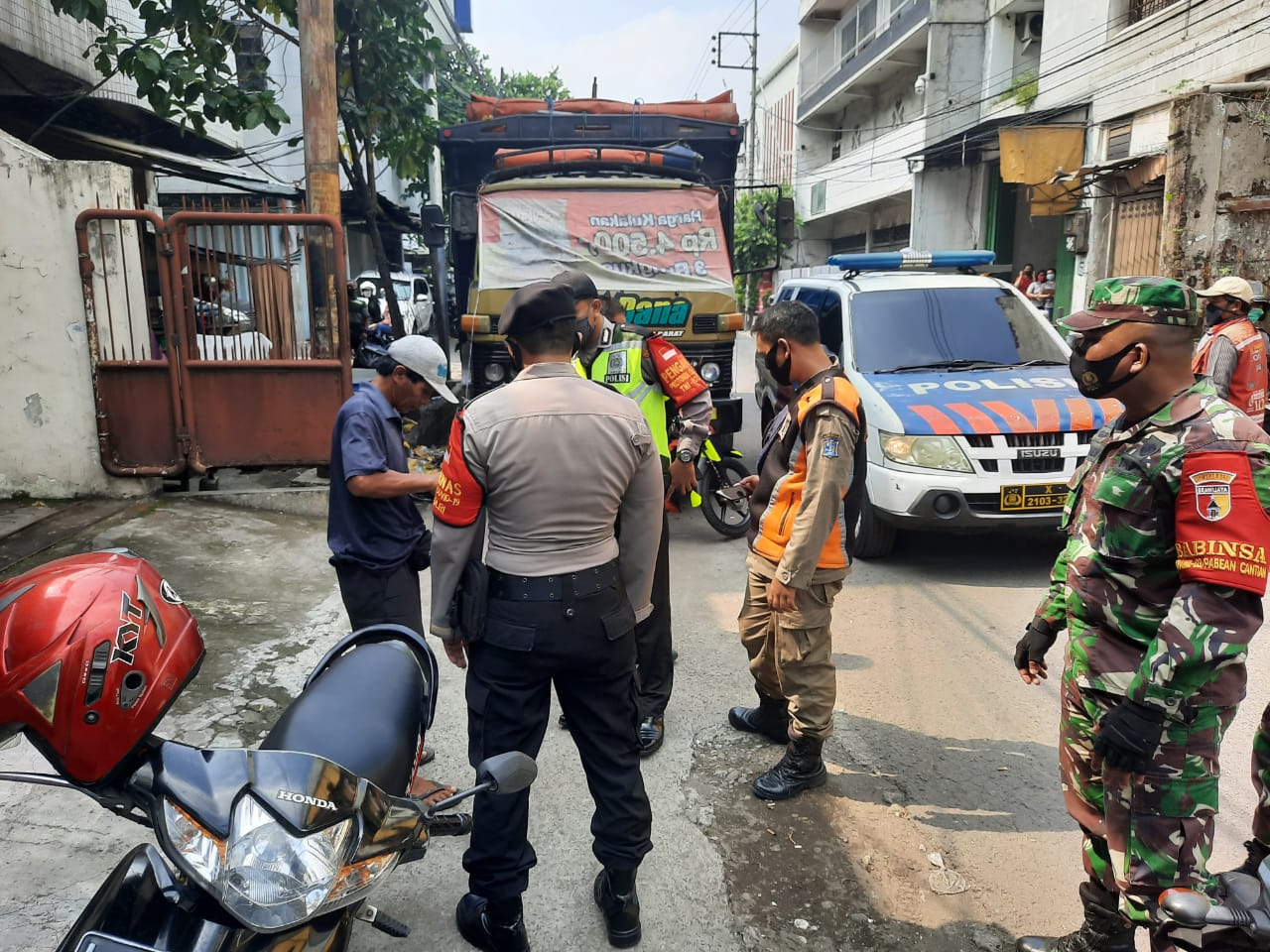 Saat itu didapati sebanyak 6 orang pengguna jalan yang tidak menggunakan masker. Dimana 3 orang diantaranya dibawa ke Puskesmas Perak Timur untuk menjalani swab tes dan 3 orang lainnya dijatuhi sanksi fisik berupa push up.