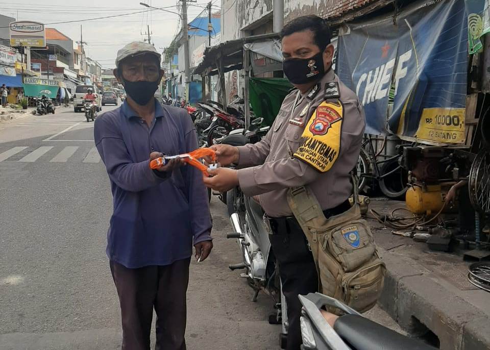 Seperti yang dilakukan Aiptu M Yasin, Babinkamtibmas Krembangan Utara, Polsek Pabean Cantikan, Polres Pelabuhan Tanjung Perak saat berpatroli di Jalan Kebalen, Rabu sore, 11 Nopember 2020.