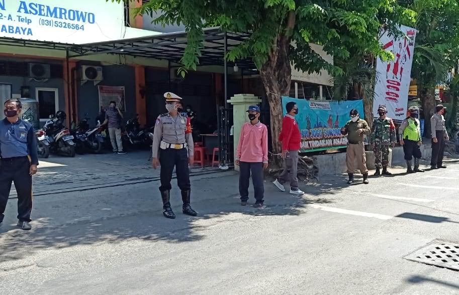 Seputarperak.com- Operasi yustisi protokol kesehatan dalam bentuk penertiban masker digelar Polsek Asemrowo, Polres Pelabuhan Tanjung Perak di Jalan Asem Raya, Kelurahan Asemrowo, Kecamatan Asemrowo, Jumat pagi, 13 Nopember 2020.