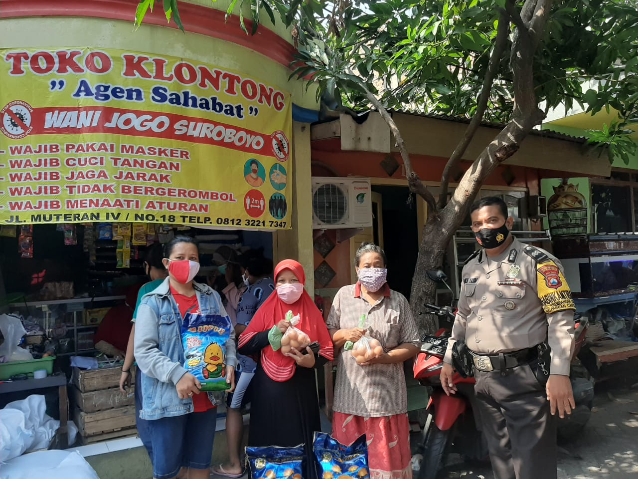 Seputarperak.com- Pengamanan dilakukan Aiptu M Yasin, Babinkamtibma Krembangan Utara, Polsek Pabean Cantikan, Polres Pelabuhan Tanjung Perak dalam kegiatan pengambilan bantuan Sembako atau BPNT (Bantuan Pangan Non Tunai) di Jalan Muteran, Sabtu pagi, 14 Nopember 2020.