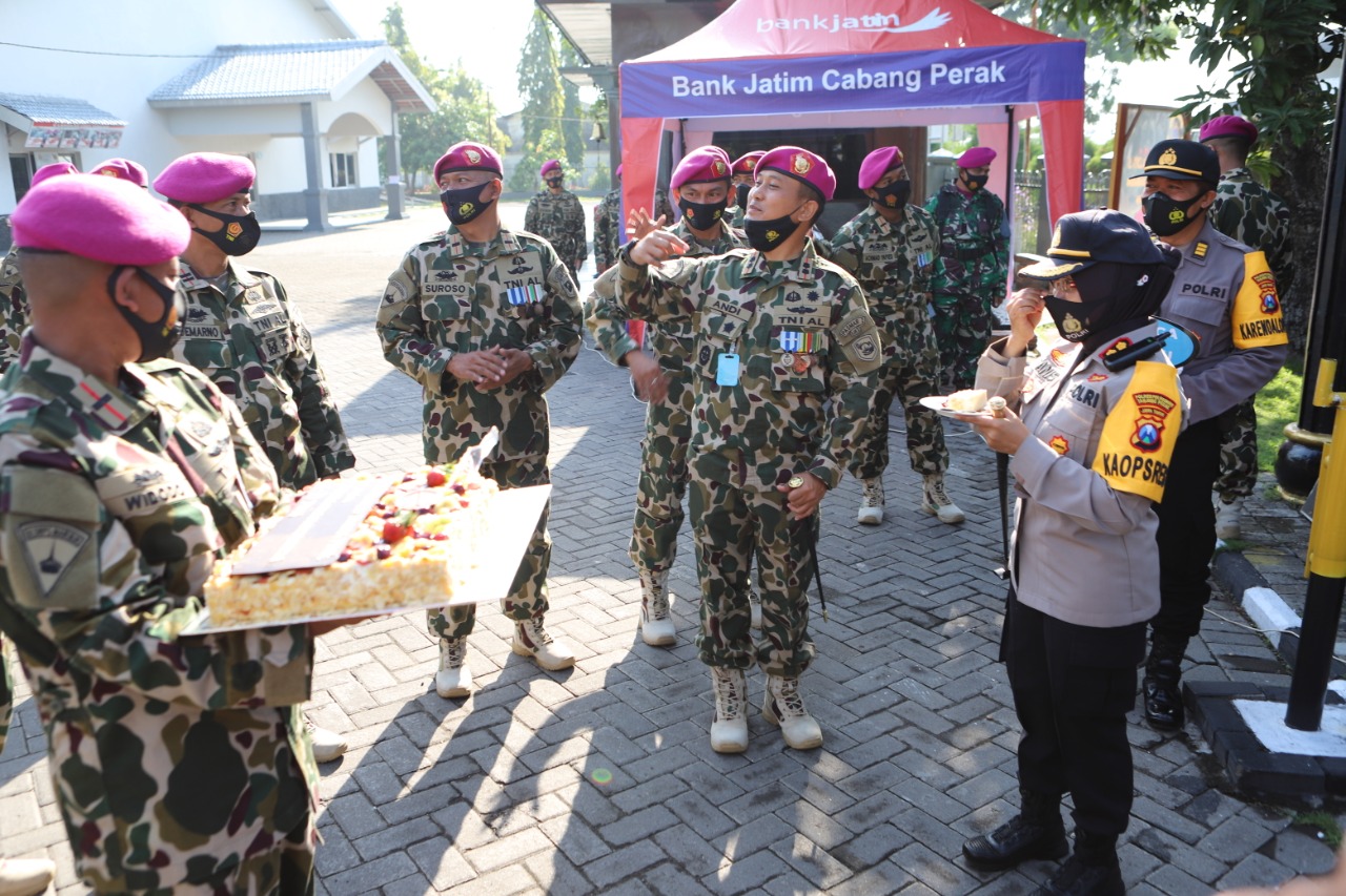 Seputarperak.com- Polres Pelabuhan Tanjung Perak memberikan ucapan selamat hari ulang tahun (HUT) Marinir Ke-75 kepada Yonmarhanlan V, Surabaya, Senin pagi, 16 Nopember 2020.
