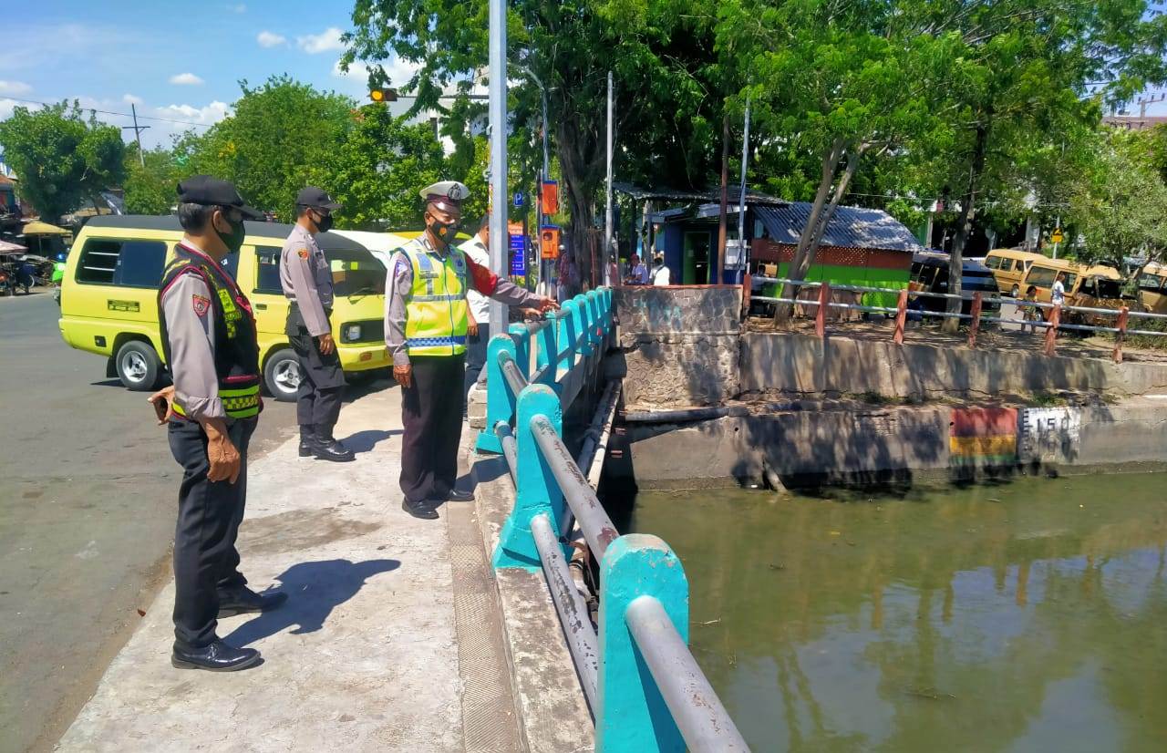 Seputarperak.com- Pemantauan debit air dilakukan personil Polsek Pabean Cantikan, Polres Pelabuhan Tanjung Perak di Sungai Kalimas, Rabu siang, 18 Nopember 2020.