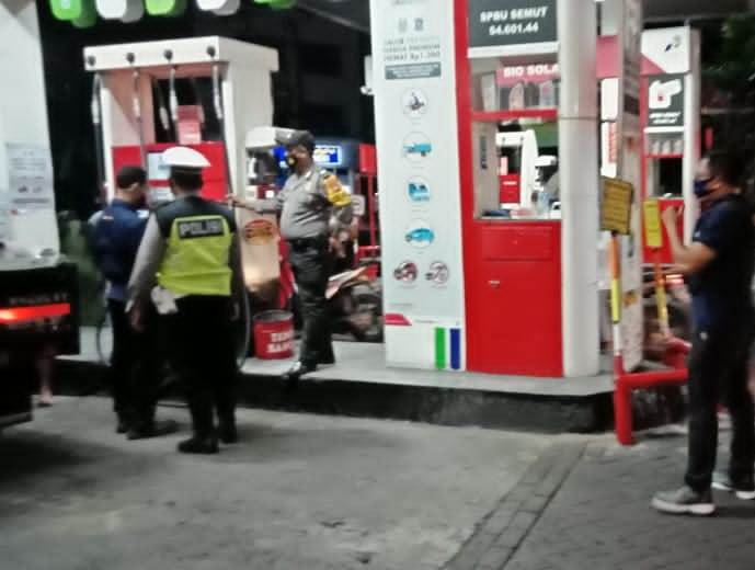 Seputarperak.com- Patroli dilakukan personil Polsek Pabean Cantikan, Polres Pelabuhan Tanjung Perak di SPBU Jalan Stasiun Kota, Sabtu malam, 21 Nopember 2020.