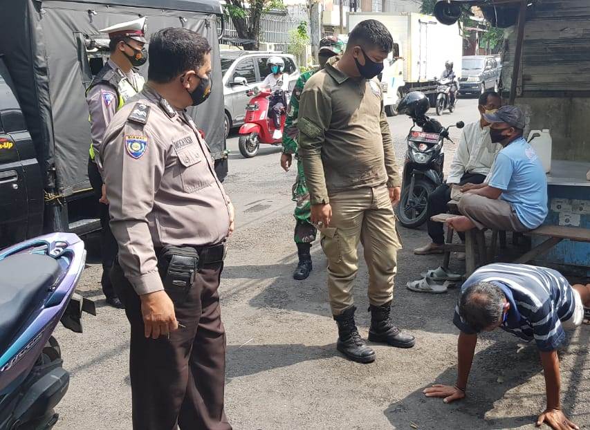 Saat itu didapatkan sebanyak 4 orang pengguna jalan yang tidak menggunakan masker. Dimana 2 orang dibawa ke Puskesmas Perak Timur untuk menjalani swab tes, 1 orang dijatuhi sanksi fisik berupa push up dan 1 orang dihukum melafalkan teks Pancasila.