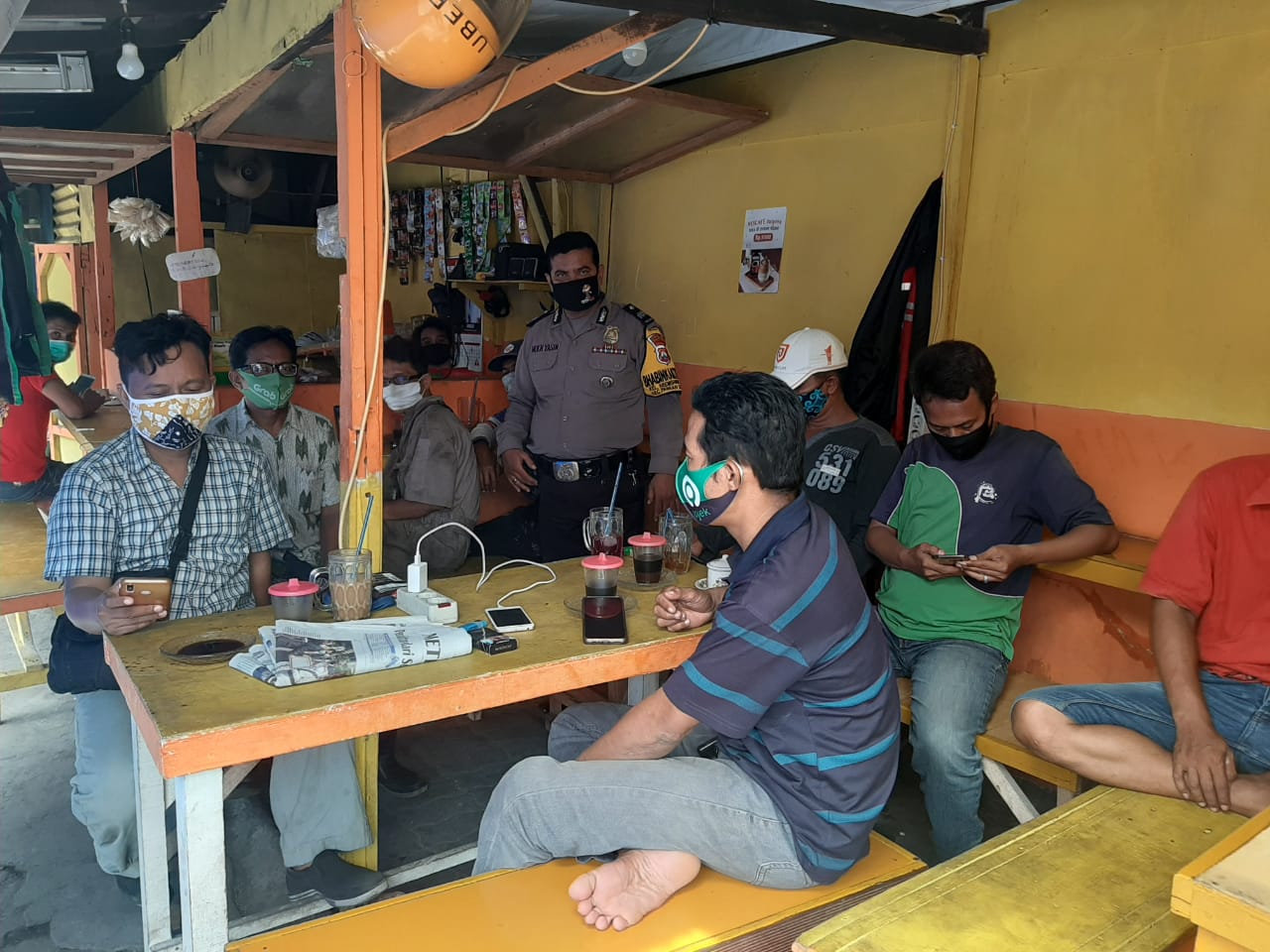 Dalam kunjungannya, Selasa siang, 24 Nopember 2020, Aiptu M Yasin menyampaikan kepada orang-orang yang berada di warung, untuk selalu ingat dengan 3M.
