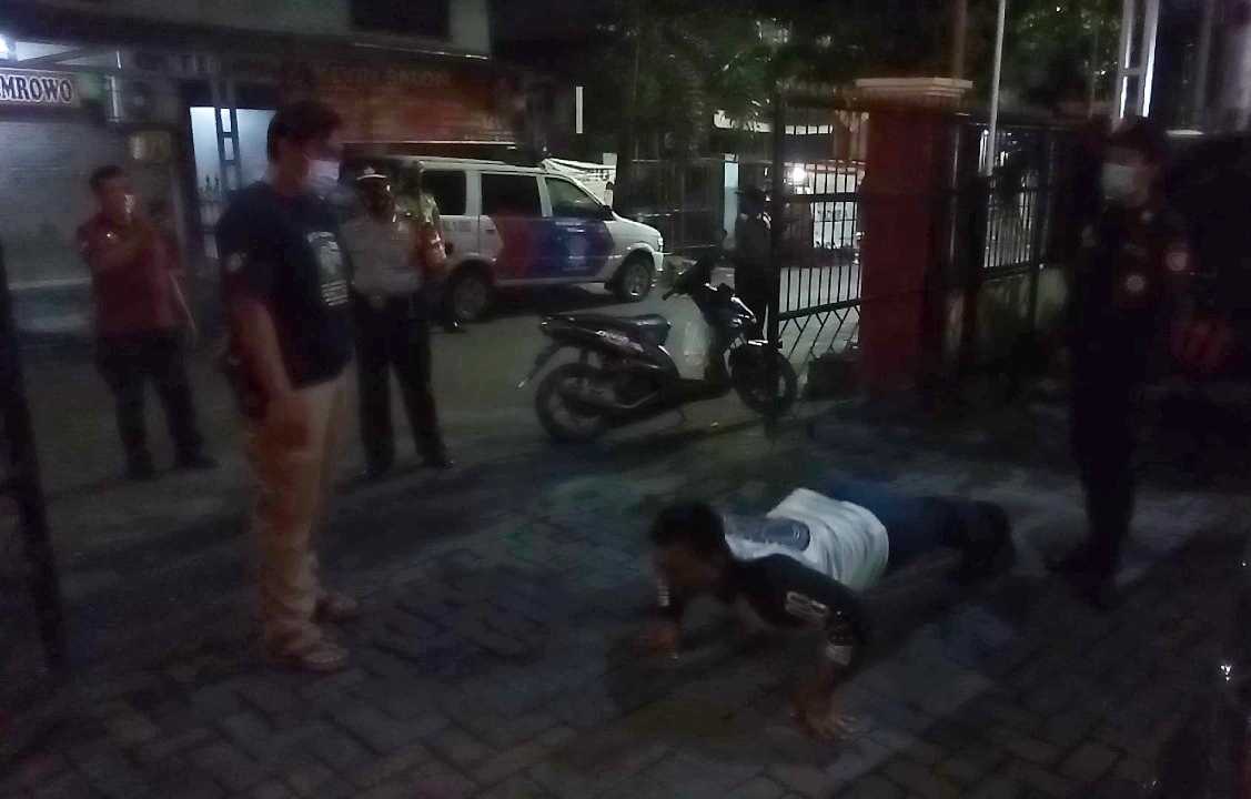 Saat itu didapati sebanyak 9 orang pengguna jalan yang tidak menggunakan masker. Dimana 2 orang diantaranya dijatuhi sanksi penyitaan KTP dan 7 orang lainnya dijatuhi sanksi fisik berupa push up.