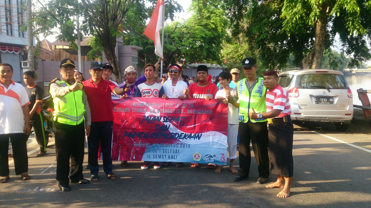 Seputarperak.com- Acara jalan sehat yang digelar warga RW 08 Jalan Semut Kali, Minggu pagi, 24 Agustus 2018 berlangsung tertib dan lancar di bawah pengamanan Polsek Pabean Cantikan, Polres Pelabuhan Tanjung Perak.