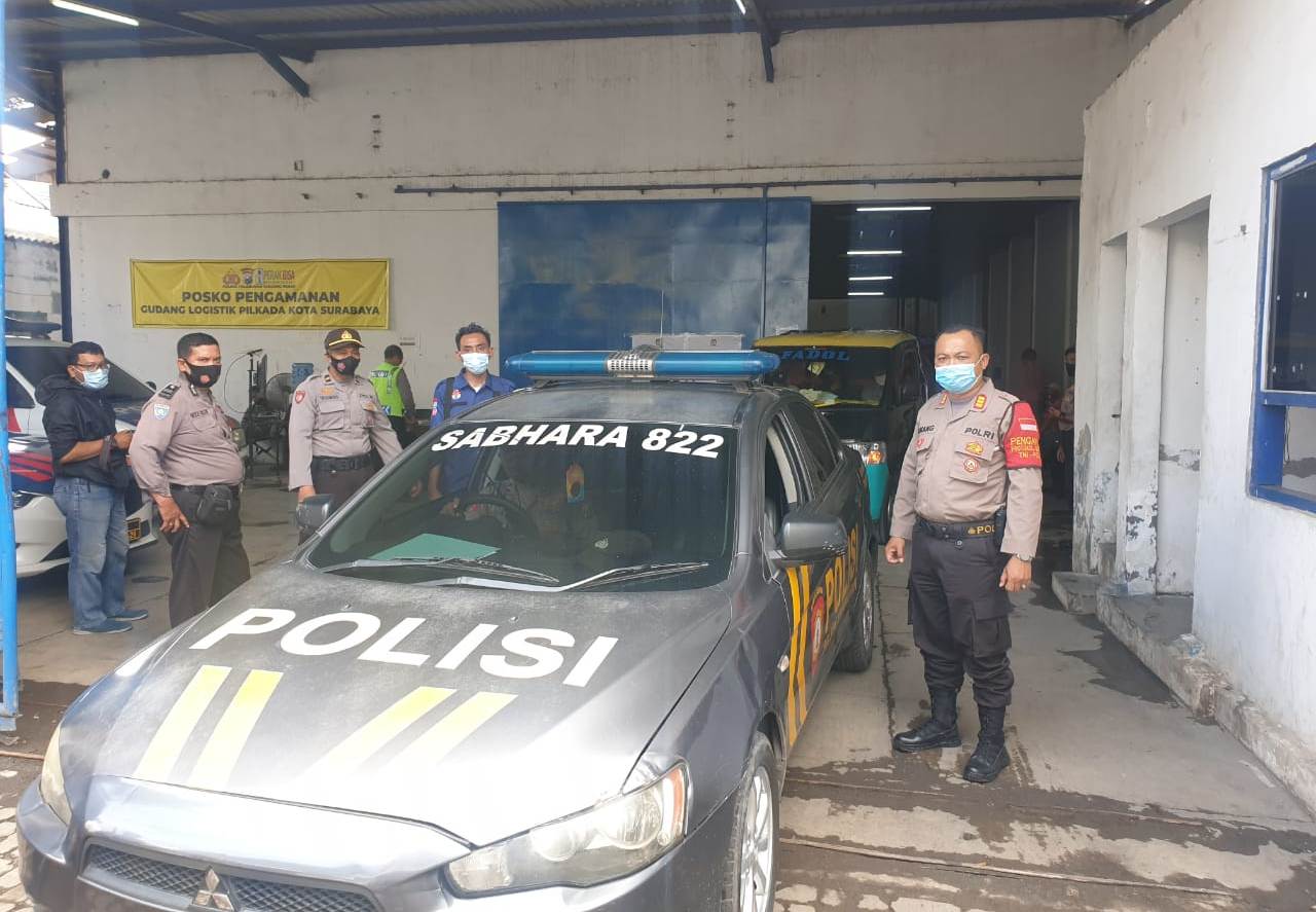 Seputarperak.com- Personil Polsek Krembangan, Polres Pelabuhan Tanjung Perak melaksanakan pengawalan pendistribusian logistik Pilwali, Rabu pagi, 2 Desember 2020.