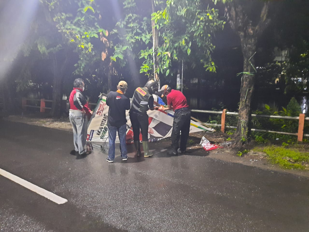 Saat itu semua APK, baik spanduk, poster maupun baliho bergambar partai maupun Cawali (Calon Walikota) dan Cawawali (Calon Wakil Walikkota) diturunkan tanpa pandang bulu.