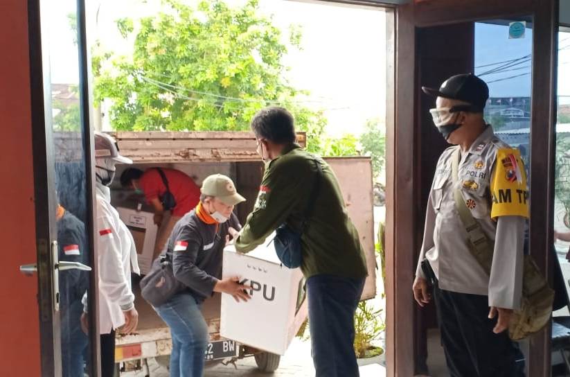 Seputarperak.com- Pendistribusian kotak suara dan beberapa logistik Pilwali lainnya dilakukan dari PPK Kecamatan Bulak ke semua PPS, Selasa sore, 8 Desember 2020.
