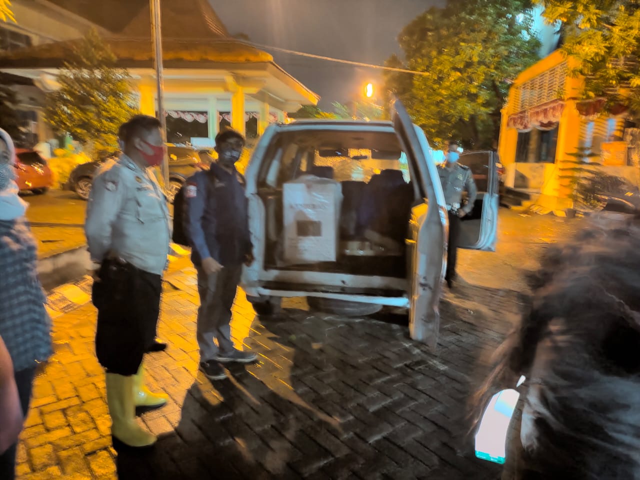 Seputarperak.com- Personil Polsek Kenjeran, Polres Pelabuhan Tanjung Perak melaksanakan pengawalan pengiriman surat suara hasil perhitungan ulang atau rekapitulasi di PPK Kecamatan Kenjeran Jalan HM Noer, Minggu malam, 13 Desember 2020.