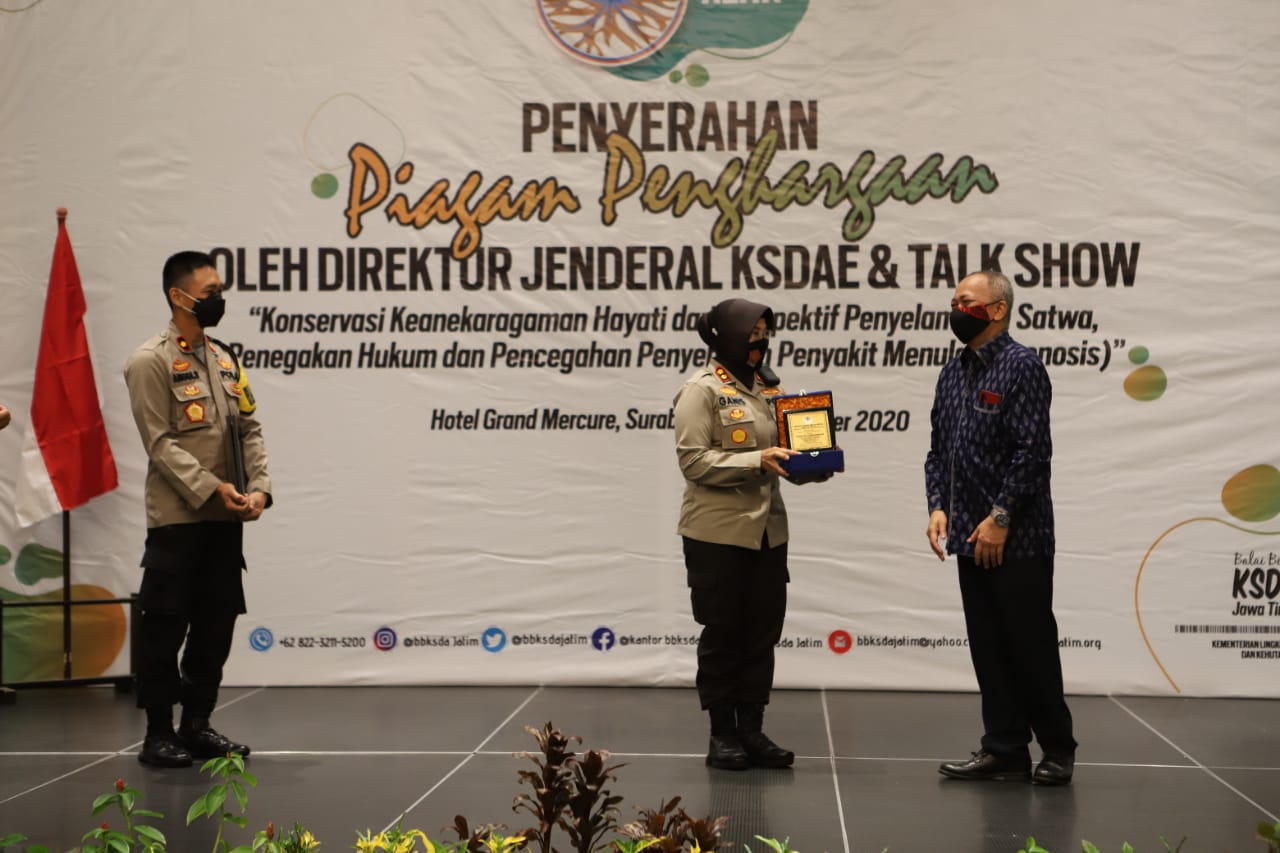 Penghargaan ini diberikan atas kinerja pengawasan dan pengendalian yang dilakukan Polres Pelabuhan Tanjung Perak terhadap peredaran tumbuhan dan satwa liar.