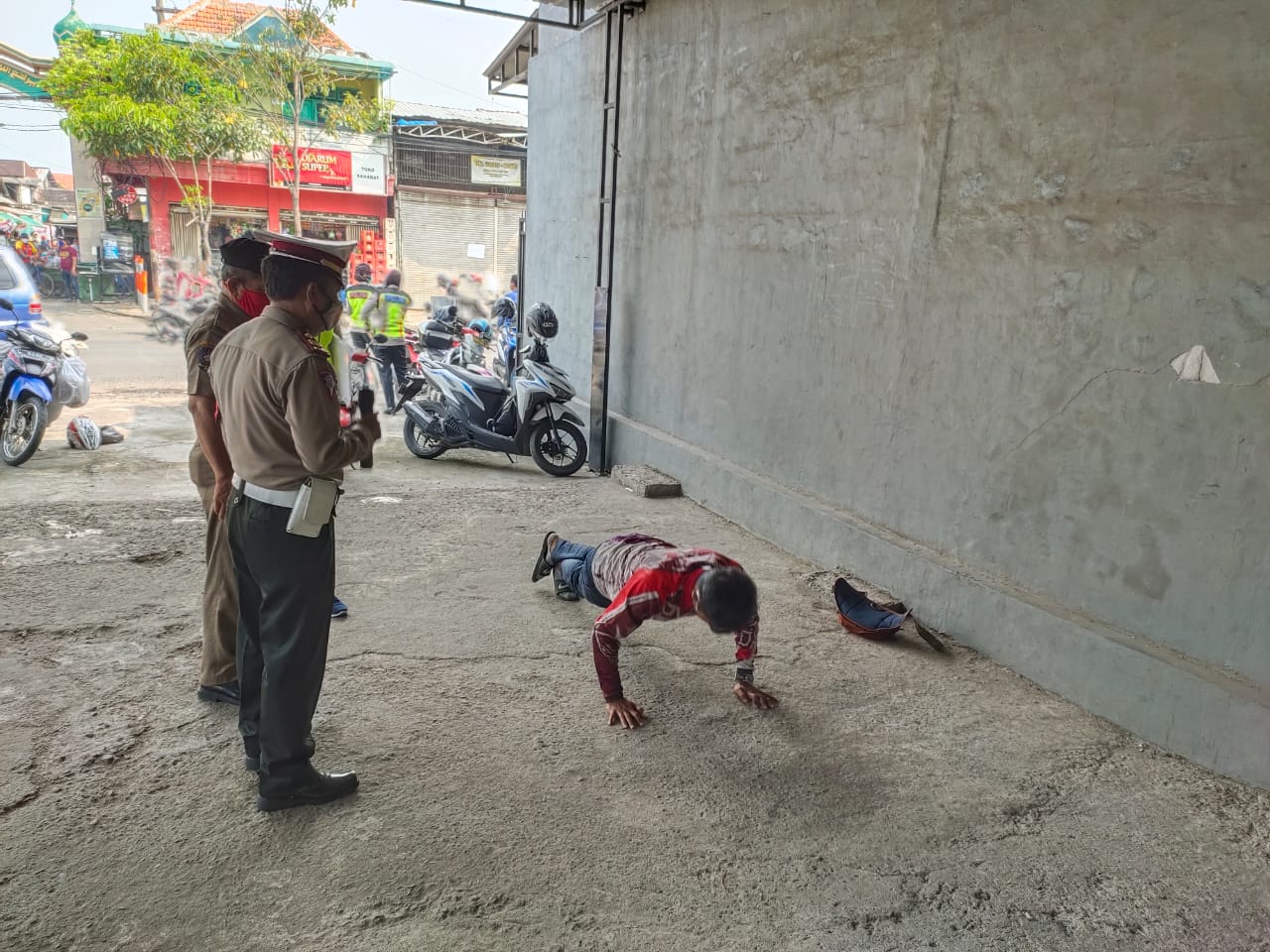 Masing-masing sebanyak 25 orang dijatuhi sanksi penyitaan KTP serta 14 orang dijatuhi sanksi fisik berupa push up dan skot jam.