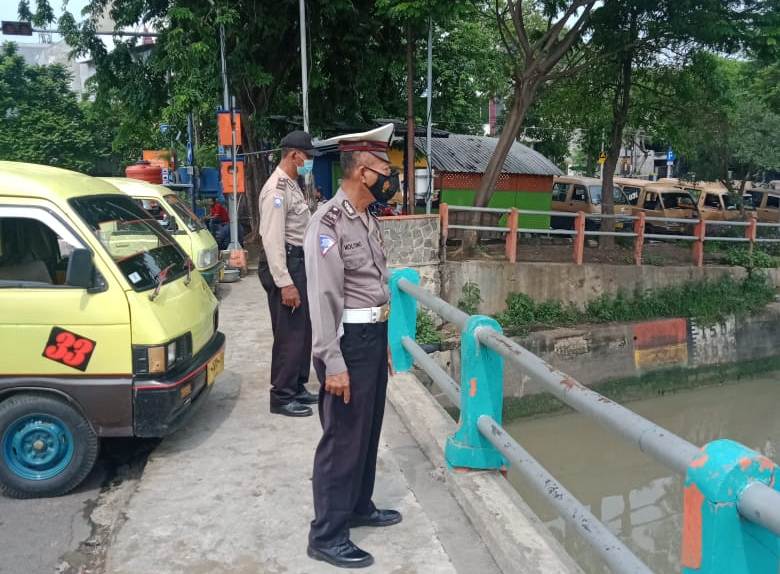 Seputarperak.com- Pemantauan debit air dilakukan personil Polsek Pabean Cantikan, Polres Pelabuhan Tanjung Perak di Sungai Kalimas, Sabtu siang, 2 Januari 2021.