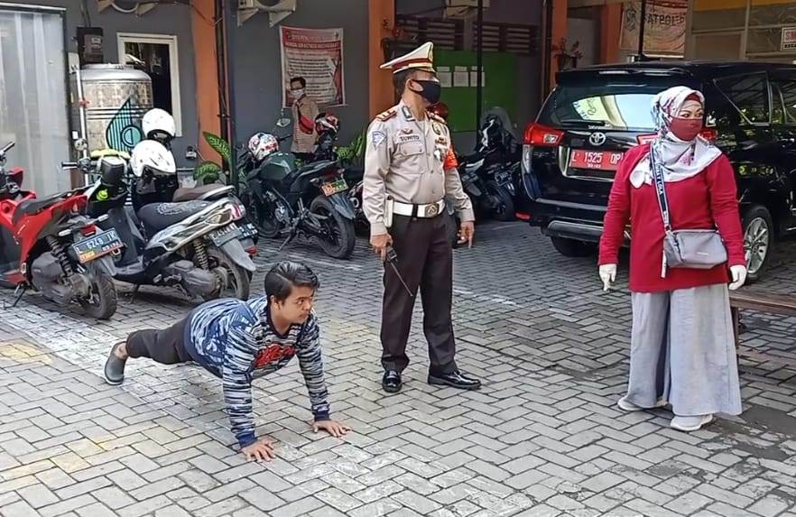 Saat itu didapati sebanyak 12 orang yang tidak menggunakan masker. Dimana 8 orang diantaranya dilakukan penyitaan KTP dan 4 orang lainnya dijatuhui sanksi fisik berupa push up.