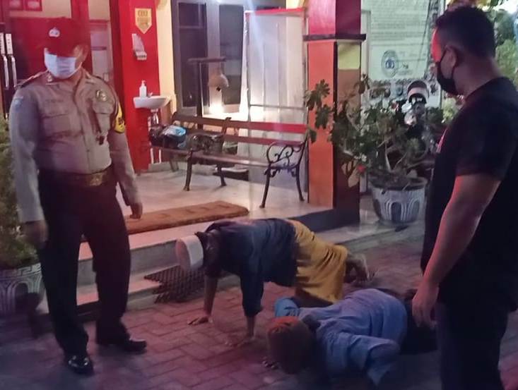 Saat itu ditemukan sebanyak 9 orang yang tidak menggunakan masker, dimana 1 orang dilakukan penyitaan KTP dan 8 lainya dijatuhi sanksi fisik berupa push up atau sanksi sosial menyanyikan lagu Indonesia Raya.