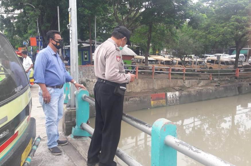 Seputarperak.com- Pemantauan debit air dilakukan personil Polsek Pabean Cantikan di Sungai Kalimas, Rabu siang, 13 Januari 2021.