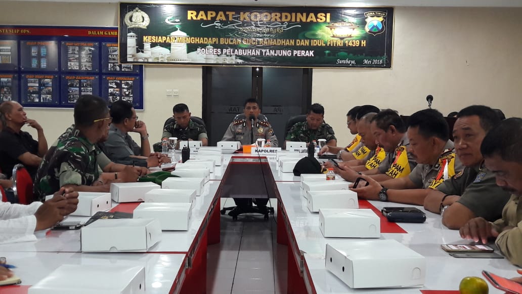 Selasa pagi, 15 Mei 2018, rakor digelar di Aula Mapolres Pelabuhan Tanjung Perak, yang dipimpin langsung oleh Kapolres AKBP Antonius Agus Rahmanto, S.I.K, M.Si.