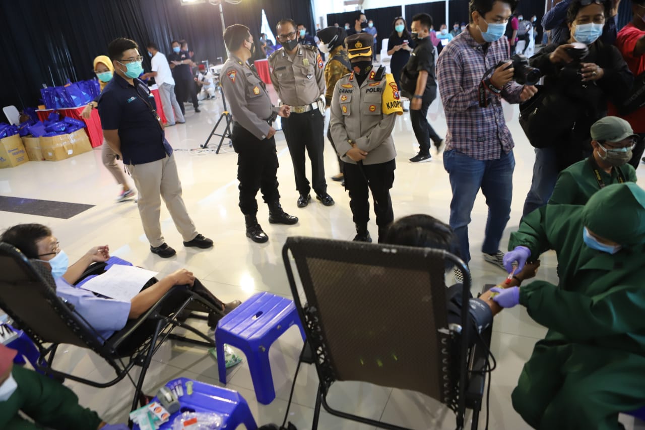 Seputarperak.com- Kapolres Pelabuhan Tanjung Perak, AKBP Ganis Setyaningrum, S.Si, MH memantau pelaksanaan screening kesehatan dalam rangka pelaksanaan donor plasma konvalesen di Pelabuhan Gapura Surya Nusantara (GSN), Kamis pagi, 21 Januari 2021.