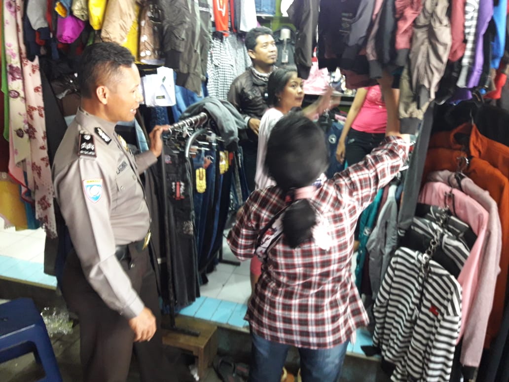 Kunjungan dilakukan Aiptu Lagiman ke Pasar Pogot, Kelurahan Takal Kedinding yang hari itu sedang ramai.