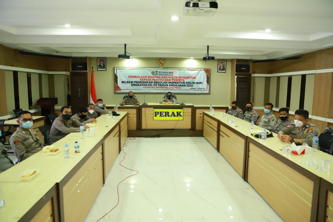 Seputarperak.com- Kapolres Pelabuhan Tanjung Perak, AKBP Ganis Setyaningrum, S.Si, MH memimpin pelaksanaan pembukaan pengambilan sumpah dan penandatanganan pakta integritas terkait seleksi Sekolah Inspektur Polisi (SIP) di Ruang Rupatama Sanika Satyawada Polres.