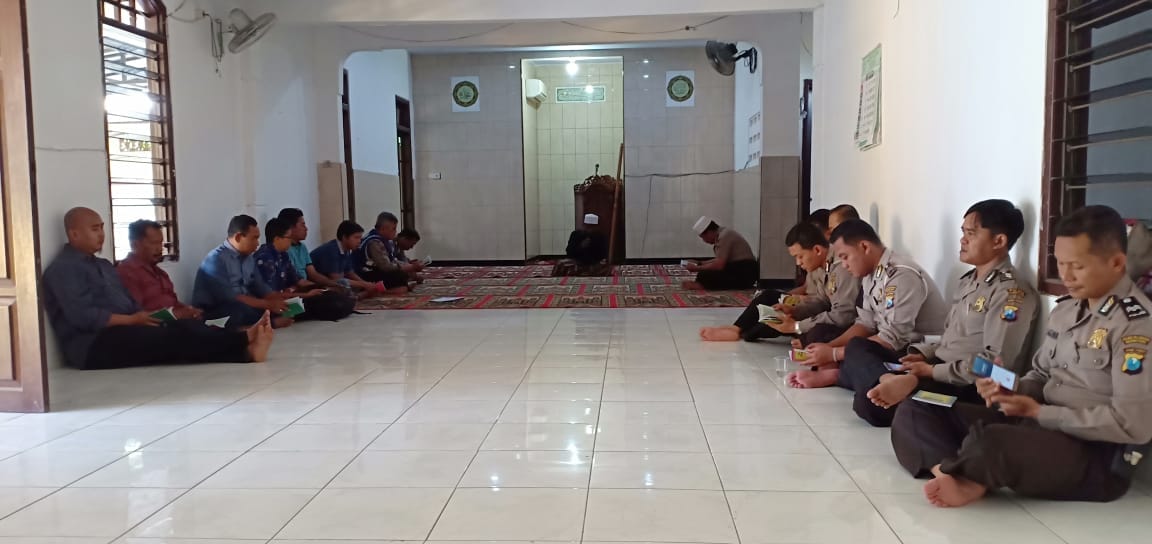 Saat itu puluhan personil Polsek Kenjeran dari lintas unit mengikuti acara Binrohtal yang diisi dengan yasinan dan pembacaan surat-surat pendek.