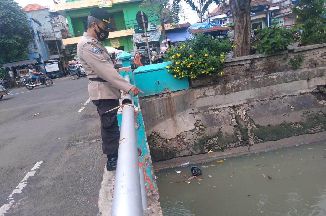 Seputarperak.com- Pemantauan debit air dilakukan personil Polsek Semampir, Polres Pelabuhan Tanjung Perak di Sungai Pegirian, Jumat pagi, 29 Januari 2021.