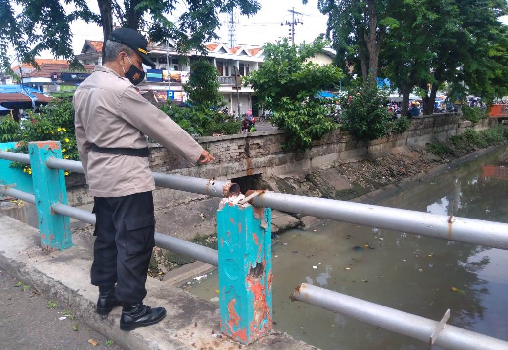 Seputarperak.com- Pemantauan debit air dilakukan personil Polsek Semampir, Polres Pelabuhan Tanjung Perak di Sungai Pegirian, Rabu siang, 3 Pebruari 2021.