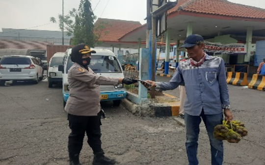 Seputarperak.com- Polwan Polres Pelabuhan Tanjung Perak membagikan masker gratis kepada para sopir angkot dan masyarakat yang ada di lokasi Terminal Ujung, Jumat, 5 Pebruari 2021.