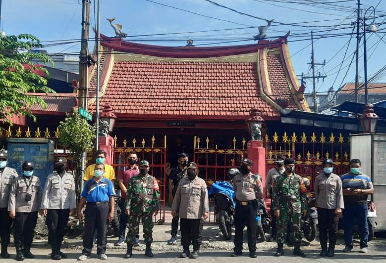 Seputarperak.com- Pengamanan dilakukan personil gabungan Polres Pelabuhan Tanjung Perak bersama instansi samping di Klenteng Sukhaloka, Jalan Coklat, Jumat, 12 Pebruari 2021.
