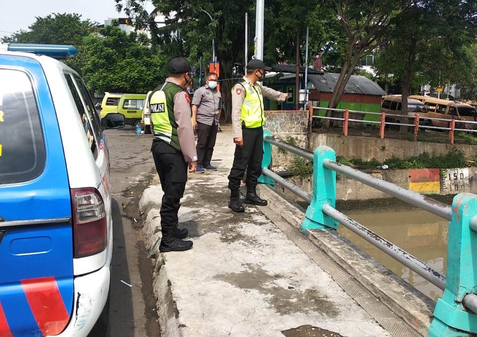 Seputarperak.com- Pemantauan debit air dilakukan personil Polsek Pabean Cantikan, Polres Pelabuhan Tanjung Perak di Sungai Kalimas, Rabu siang, 17 Pebruari 2021.