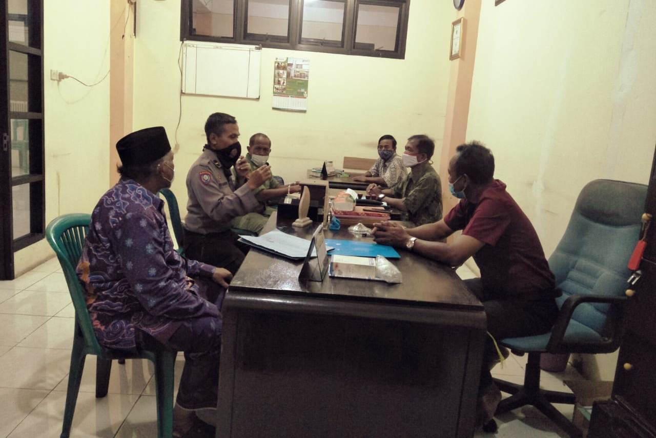 Seputarperak.com- Sosialisasi pemberlakuan pembatasan kegiatan masyarakat (PPKM) berbasis mikro dilakukan Ipda Eko Mustaghfirin, Panit Binmas Polsek Krembangan, Polres Pelabuhan Tanjung Perak kepada pengurus kampung tangguh semeru (KTS) RW 02 Kelurahan Dupak.