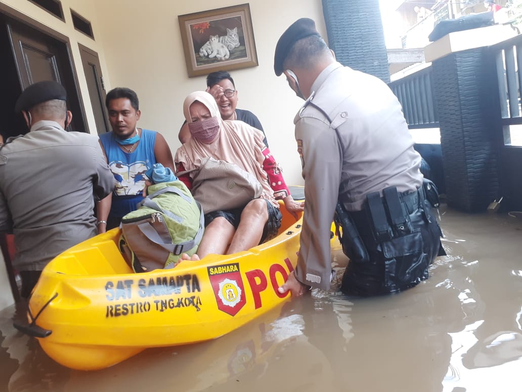 Sementara itu, polisi juga melakukan evakuasi dan bantuan ke wilayah Kabupaten Bekasi yang terdampak tanggul Sungai Citarum yang jebol. Diantaranya, Kampung Babakan Banten, Desa Sumber Urip, Pebayuran, Kabupaten Bekasi.