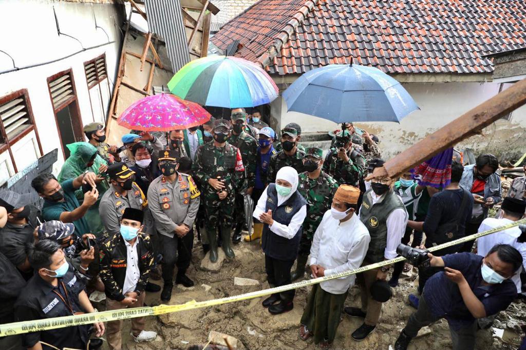 Dalam sambutannya, Gubernur Jawa Timur, didampingi Pangdam V Brawijaya, Pangkoarmada II dan Kapolda Jatim menyebutkan, bahwa sangat prihatin dan berduka atas peristiwa yang menimpa tanah longsor di Pondok Pesantren (Ponpes) yang mengakibatkan 5 (lima) Santriwati meninggal dunia karena tertimpa tebing yang longsor.