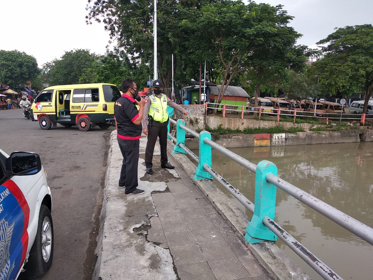 Seputarperak.com- Pemantauan debit air dilakukan personil Polsek Pabean Cantikan, Polres Pelabuhan Tanjung Perak di Sungai Kalimas, Jumat siang, 26 Pebruari 2021.