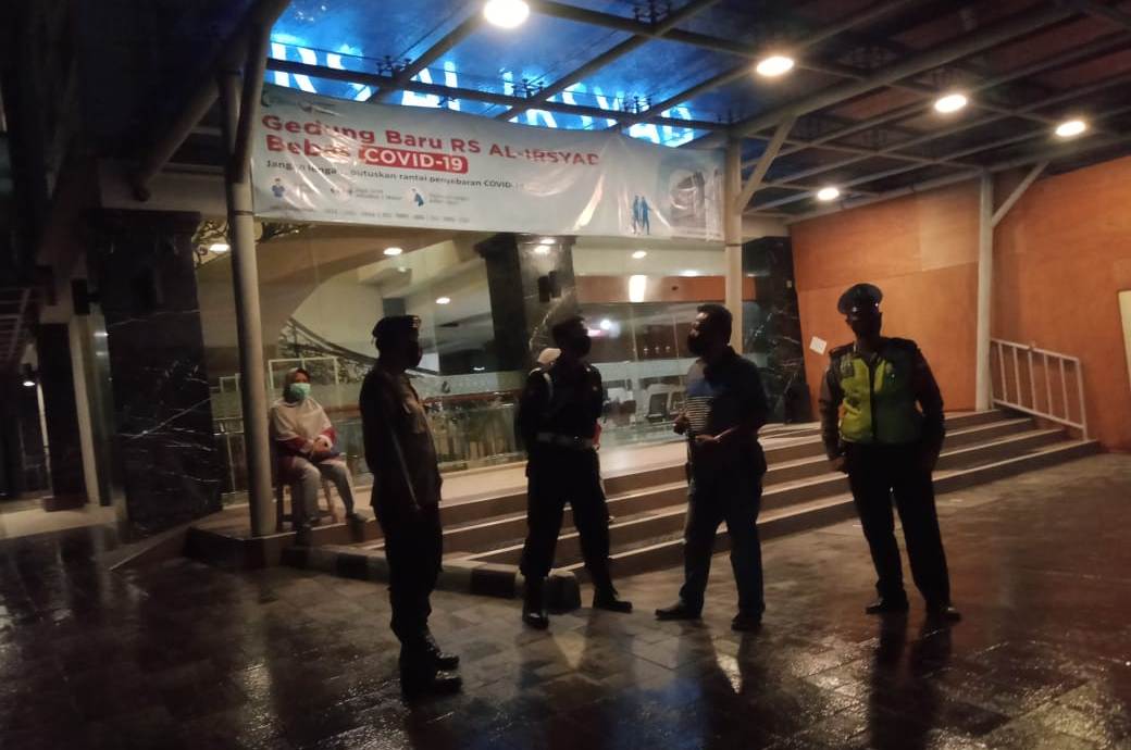 Seputarperak.com- Patroli dilakukan personil Polsek Pabean Cantikan, Polres Pelabuhan Tanjung Perak di Rumah Sakit Al Irsyad, Jalan KH Mas Mansyur, Jumat malam, 27 Pebruari 2021.