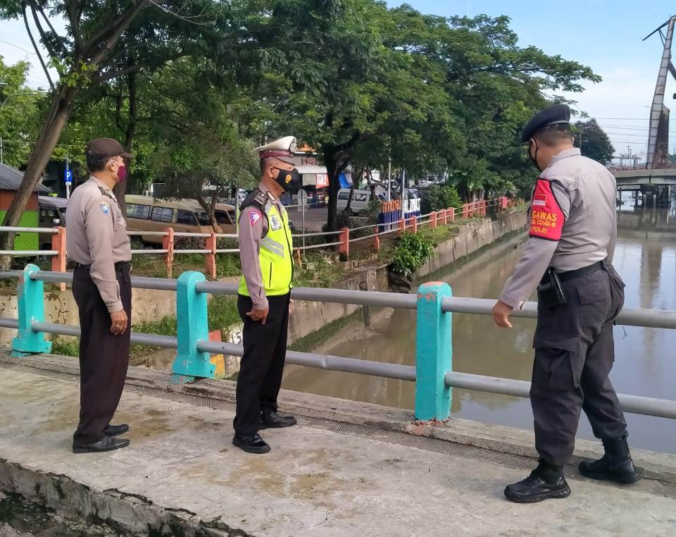 Seputarperak.com- Personil Polsek Pabean Cantikan, Polres Pelabuhan Tanjung Perak melaksanakan pemantauan debit air di Sungai Kalimas, Minggu siang, 28 Pebruari 2021.