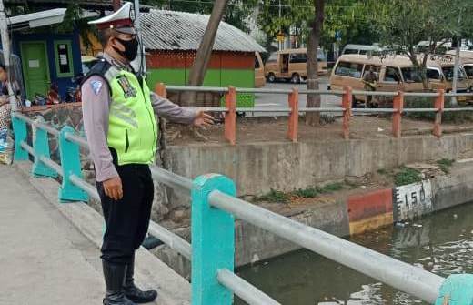 Seputarperak.com- Pemantauan debit air dilakukan personil Polsek Pabean Cantikan, Polres Pelabuhan Tanjung Perak di Sungai Kalimas, Jumat siang, 5 Maret 2021.