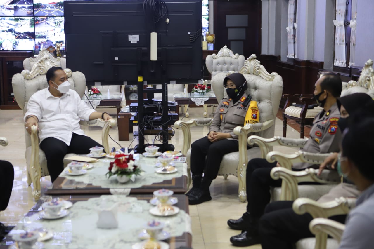 Seputarperak.com- Kunjungan dilakukan Kapolres Pelabuhan Tanjung Perak, AKBPN Ganis Setyaningrum, S.Si, MH di Balai Kota Surabaya, Selasa siang, 16 Maret 2021.