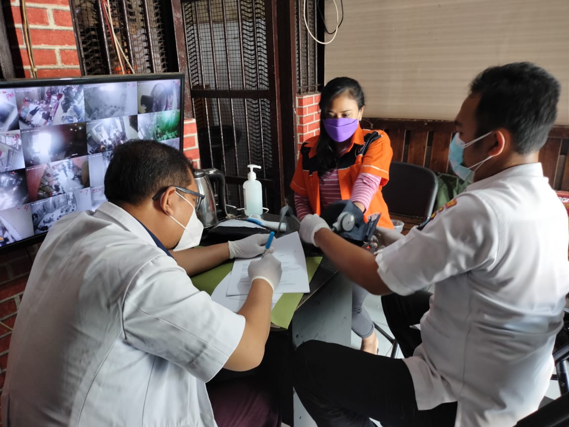 Pelaksanaan pemeriksaan kesehatan ini digelar di dalam ruang tahanan, dimana satu persatu tahanan diperiksa dan ditanyakan keluhan-keluhannya.