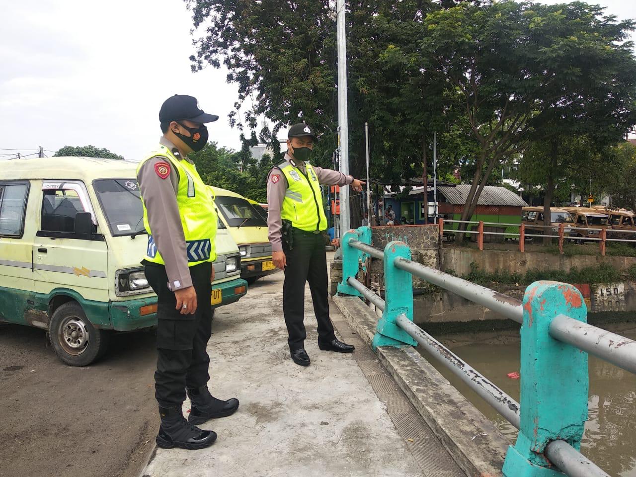 Seputarperak.com- Pemantauan debit air dilakukan personil Polsek Pabean Cantikan, Polres Pelabuhan Tanjung Perak di Sungai Kalimas, Jumat siang, 19 Maret 2021.