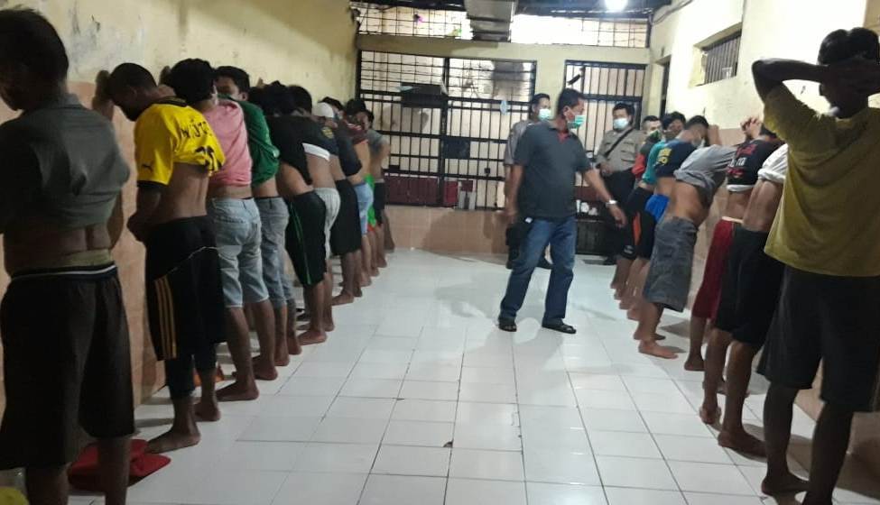 Para tahanan diabsen dan dilakukan penggeledahan badan, dilanjutkan pemeriksaan seluruh bagian ruang tahanan.
