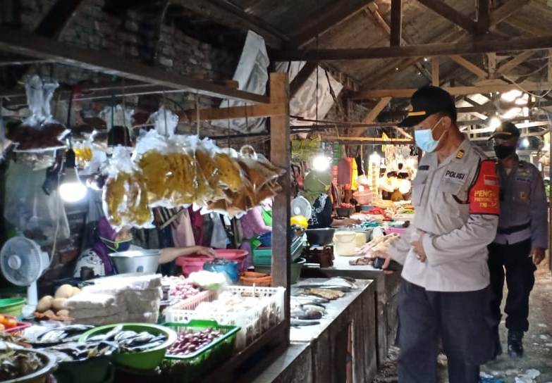 Seputarperak.com- Sosialisasi pentingnya penggunaan masker disampaikan anggota Polsek Kenjeran, Polres Pelabuhan Tanjung Perak kepada para pedagang dan pengunjung Pasar Krempyeng Jalan Dukuh Bulak Banteng, Rabu pagi, 24 Maret 2021.