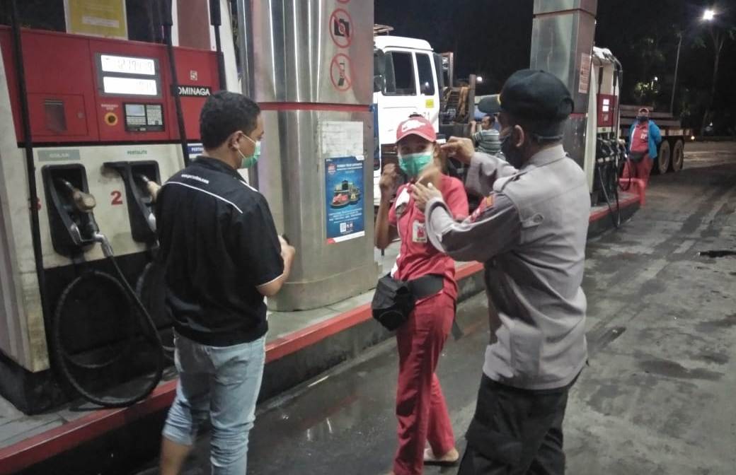 Seputarperak.com- Patroli dilakukan personil Polsek Krembangan, Polres Pelabuhan Tanjung Perak di SPBU Jalan Laksda M Nasir, Jumat dini hari, 26 Maret 2021.